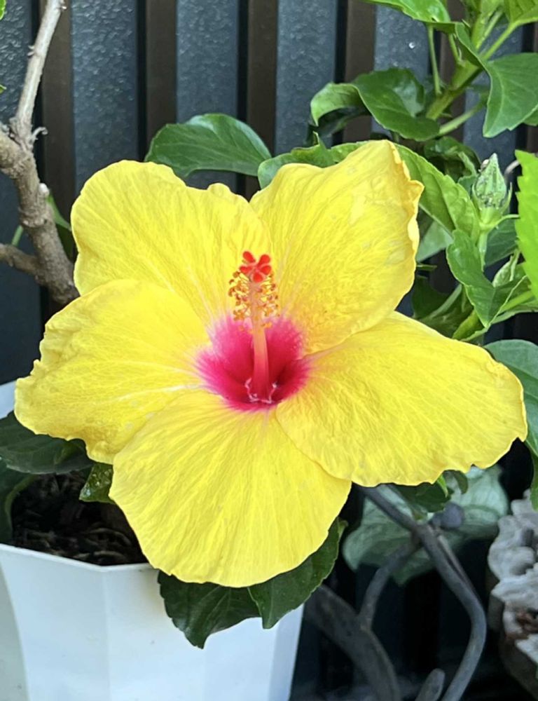 ひみつのアッコちゃんさんの玄関アプローチ,ハイビスカス 一重咲き イエロー,ハイビスカス 八重咲き ピンクの投稿画像