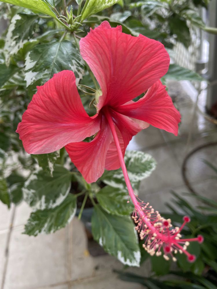 斑入り葉のハイビスカス🌺が毎日咲き続けています。