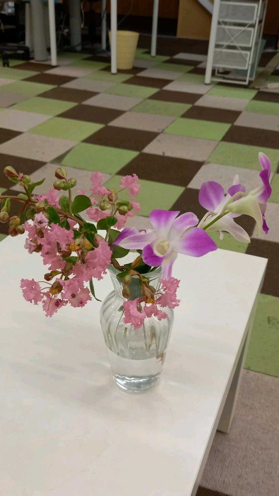 こんにちは🌿淡いピンクのサルスベリ、可愛いですね。最近、サルスベリにこんなにたくさんの色があるのを知ってから、やたらに目がいってしまいます👀アレンジメント、涼しげでグッド💠