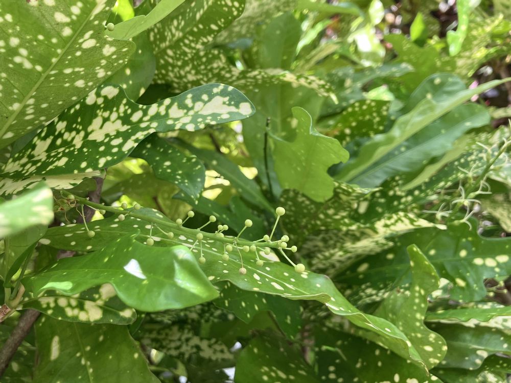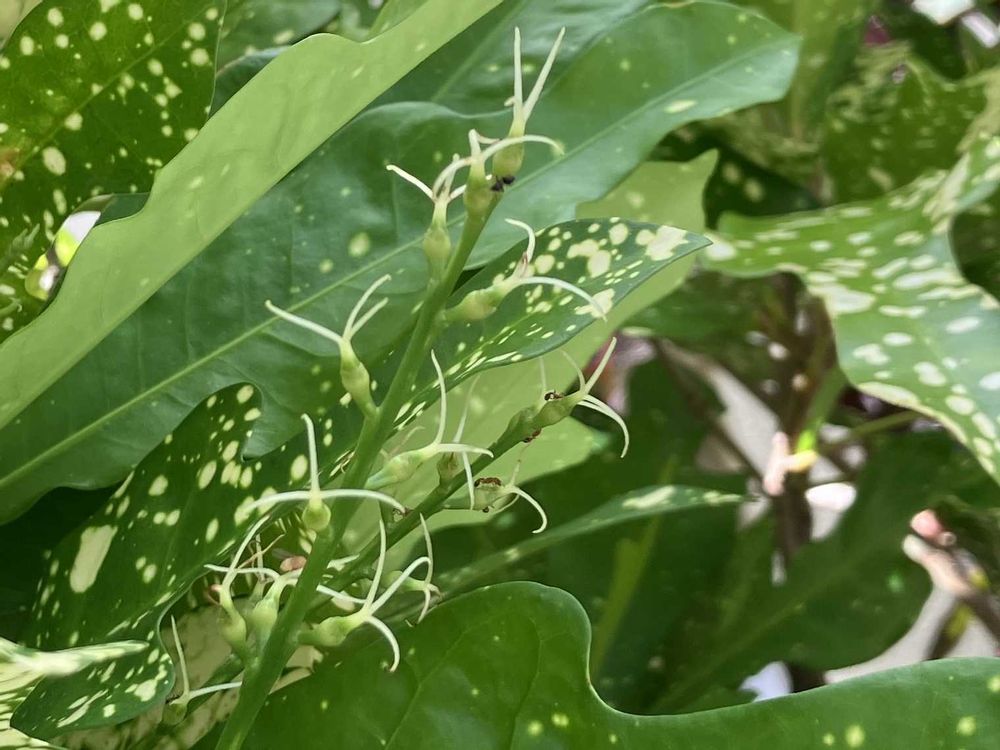 近所の、よく雄花を撮影しているいつものクロトンに咲いてました。灯台もと暗し〜🙄
