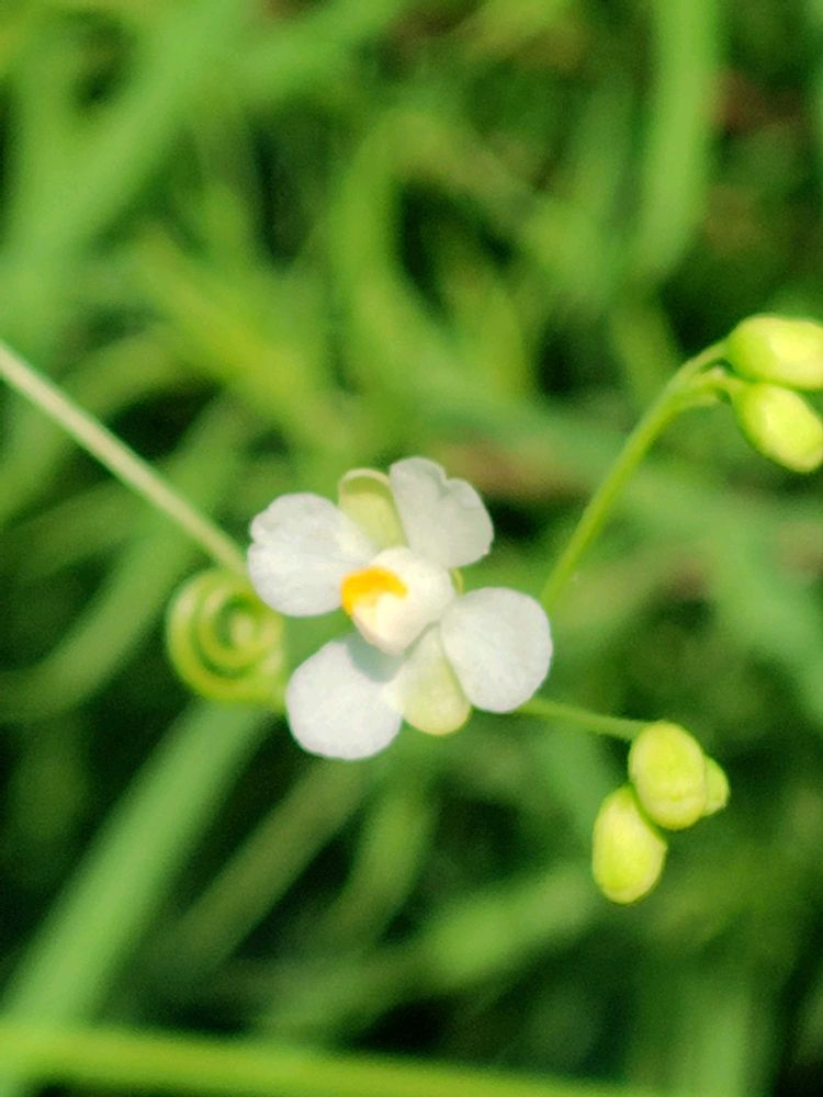 白い直径5mm位の花びら4枚の小さい花を咲かせる。