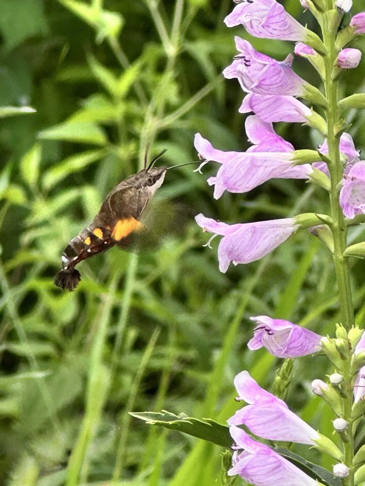 なんですか🤩このかわいい昆虫は!ホウジャクさんというのですね。ハチドリさんのようにホバリングしているのですね😊初めて見ました💕