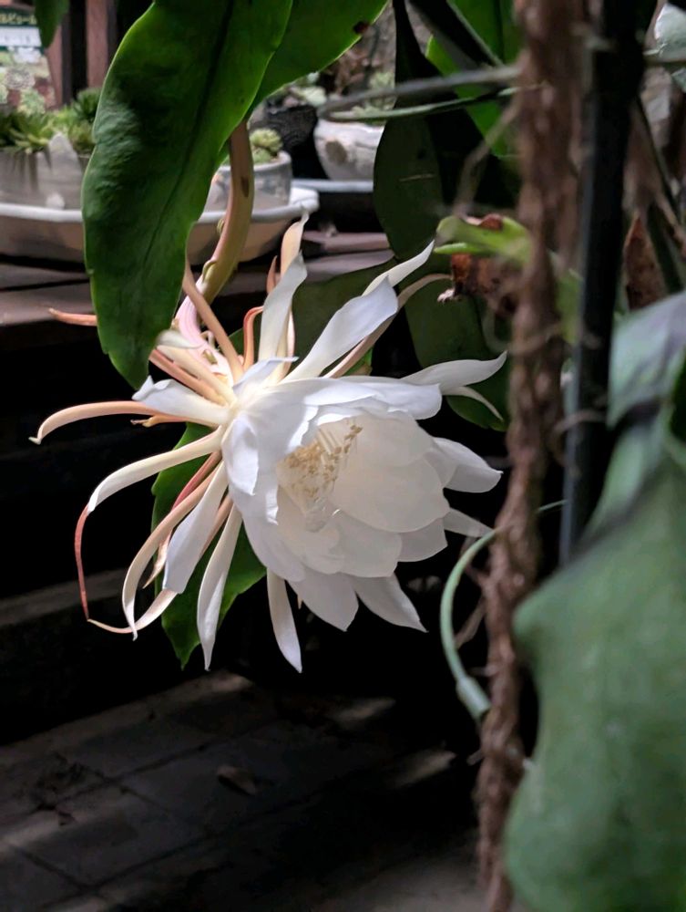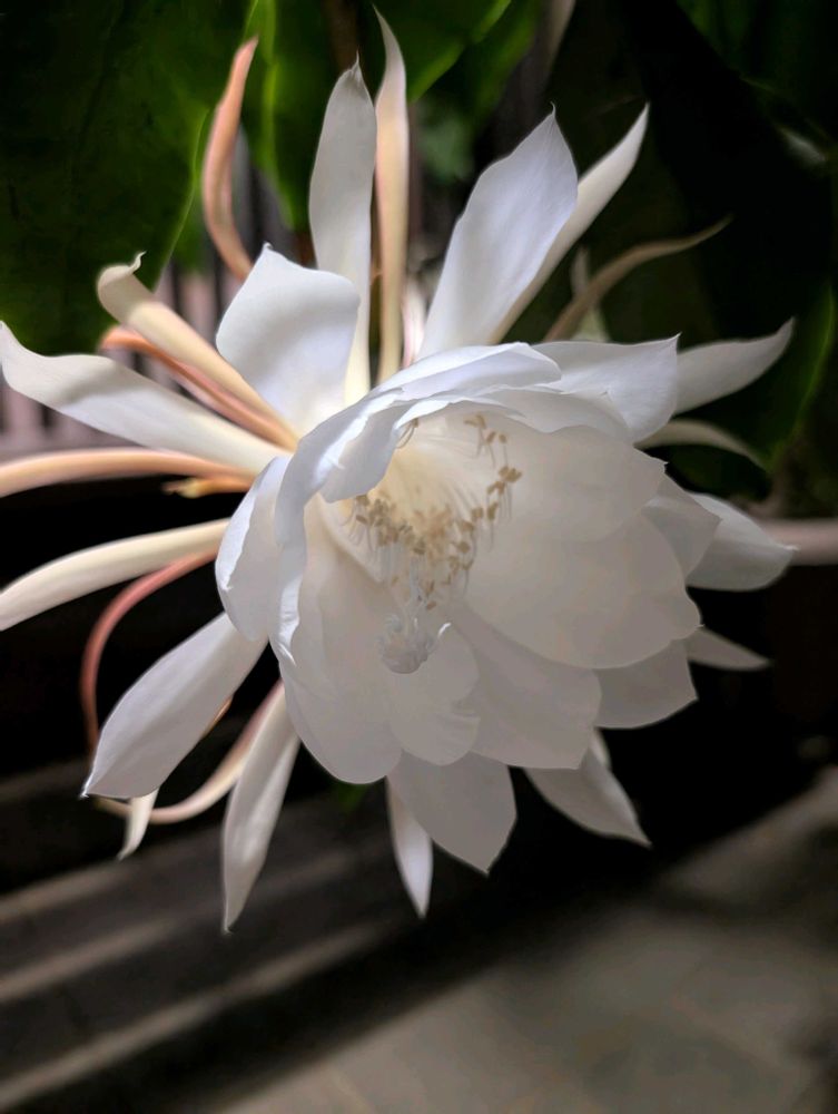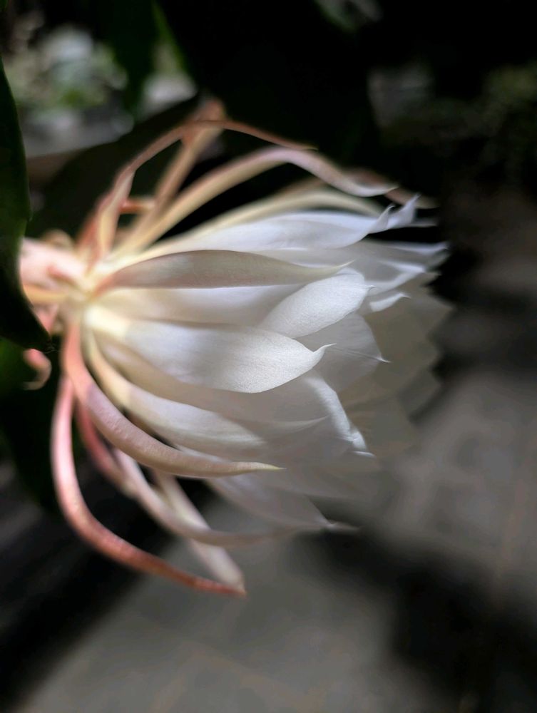何年か前に、知り合いに挿し芽をもらい育てています。今年は、3度目の開花になりますが、何度見ても、繊細で美しいです。一夜限りの命というのも、愛おしさを増しているかも💕