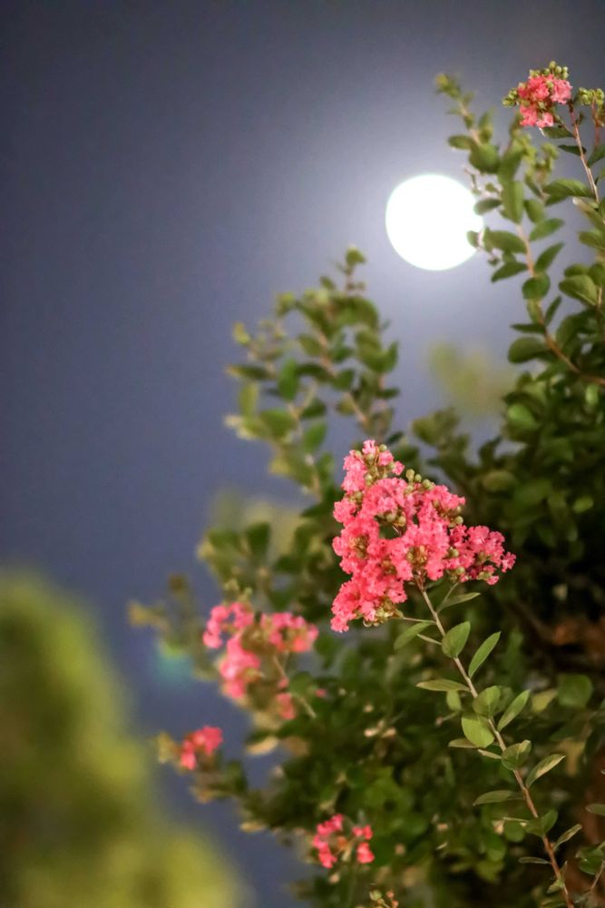 お月様と百日紅…