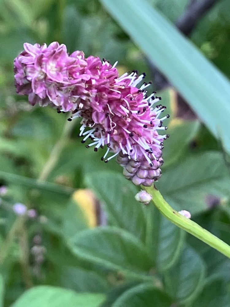 ○丸っこい小豆色の吾亦紅は、よく見ますが、こんなのもあるのですね。