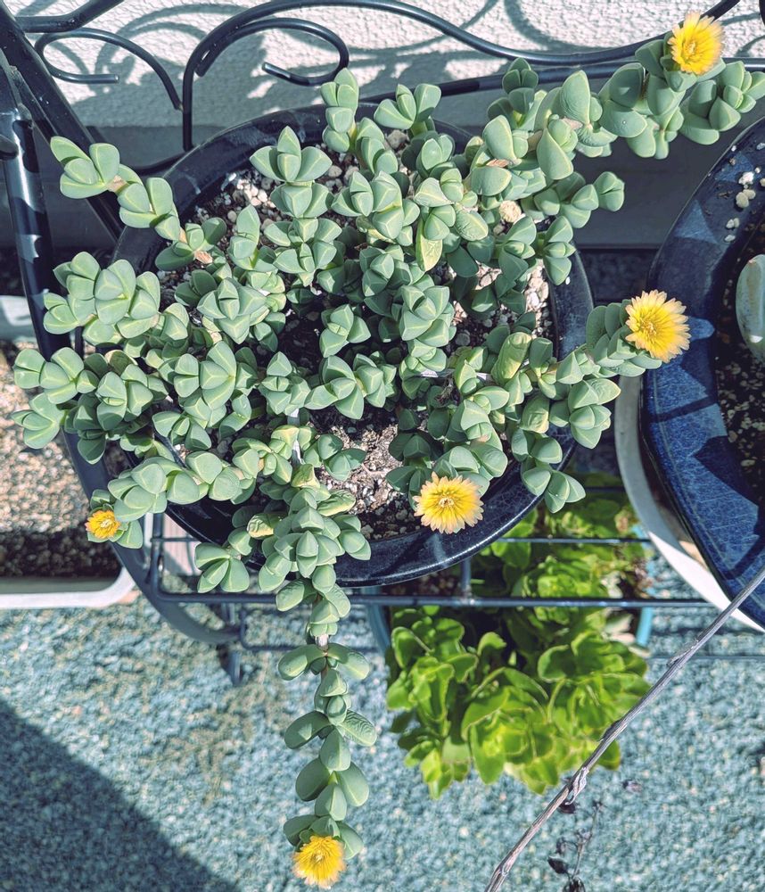 南側の軒下で頑張って大きくなった緑が綺麗なコルプスクラリア💚碧魚蓮と思ってたけどお花は黄色だし…🤔グーグルレンズが教えてくれました👏夏の暑さにも冬の寒さにも挫けることなく可愛いお花をいくつも咲かせました🌼