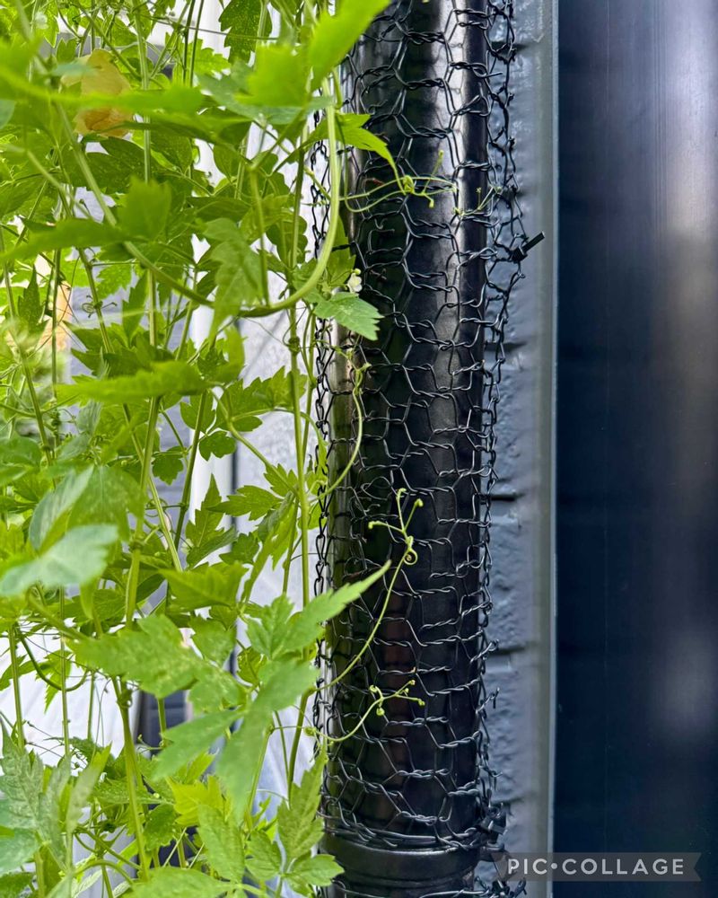登りたいのに雨樋つるつるー💦と苦戦してましたのでワイヤーネットで足場をかけてあげました