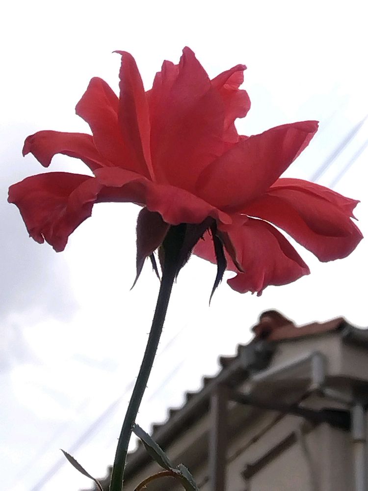 朝散歩の時に赤いバラが
