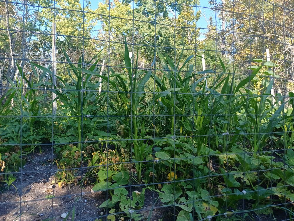 スリーシスターズ農法、三姉妹農法と呼ばれるトウモロコシ、豆、カボチャを同時に栽培するネイティブアメリカンの伝統的な畑を見ました