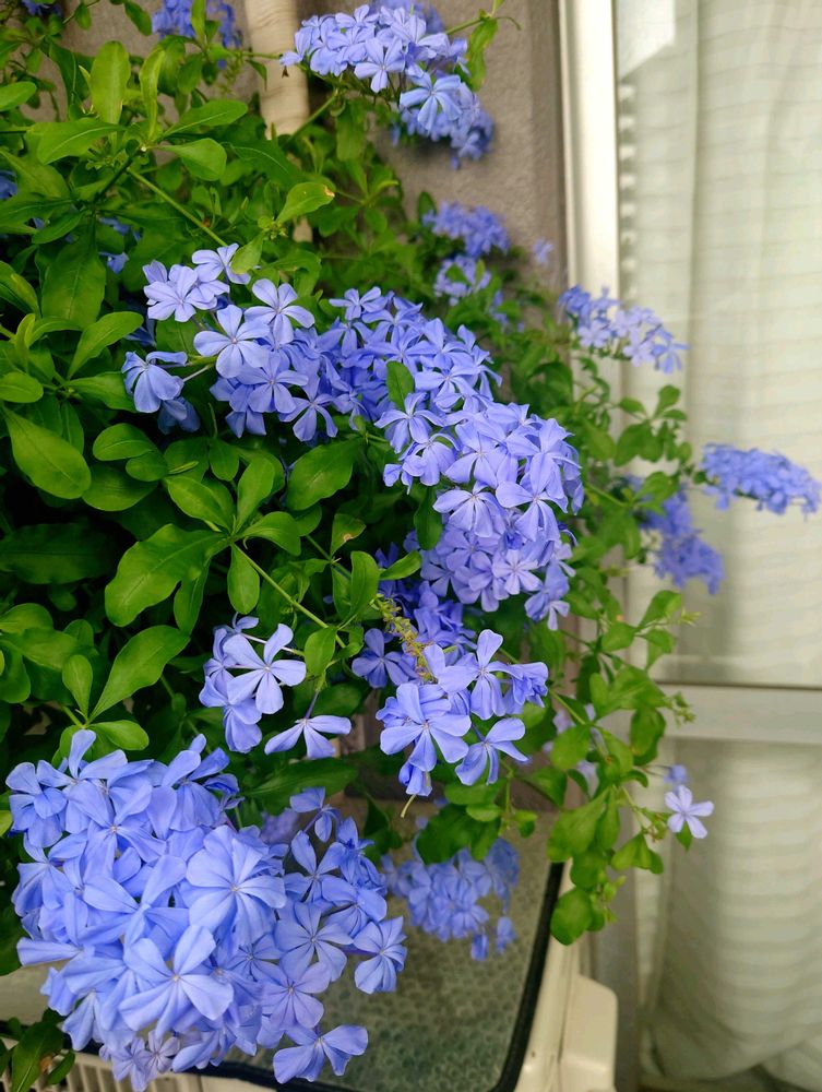 ベランダの「ルリマツリ」(プルンバーゴ)が満開になりました🌿💙