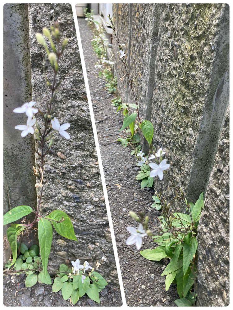 路地裏に設置されている自動販売機の下で少しだけ咲いていた可愛い白い花が、数ヶ月経った今では小径の両端に点々と広がって咲いている。