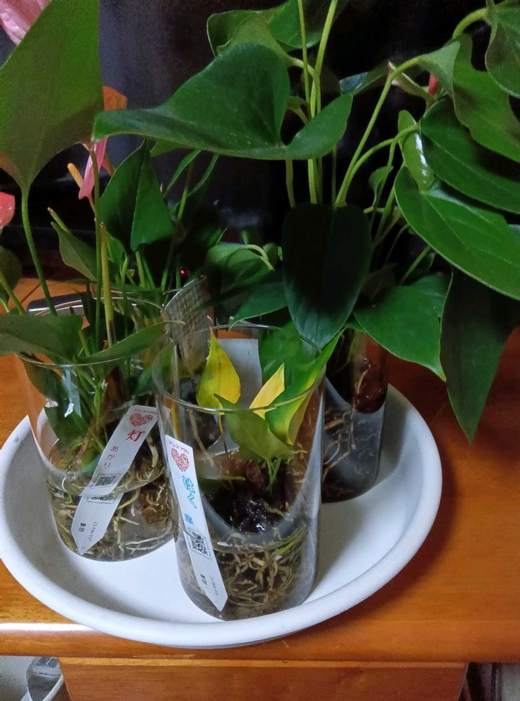 アンスリュウムさん根腐れしたの水耕栽培にしてみました