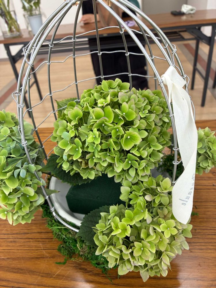 8月のフラワーアレンジメントレッスンは、鳥かごの花器のアレンジでした💐