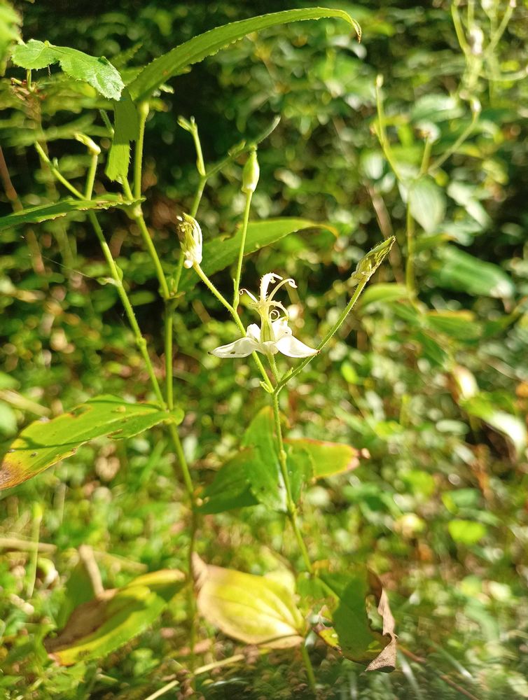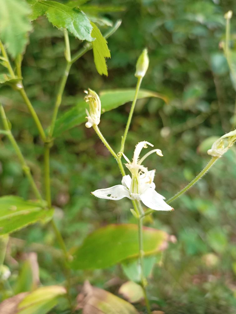 初めて見たヤマホトトギスの群生にびっくりして写真撮って🤳🏻たら、このシロバナがあったんですよ。