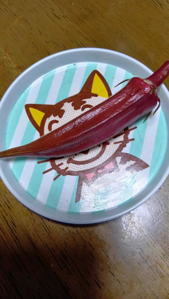 昨日、採れた赤オクラさん、今迄で、1番大きいです。😋♪
