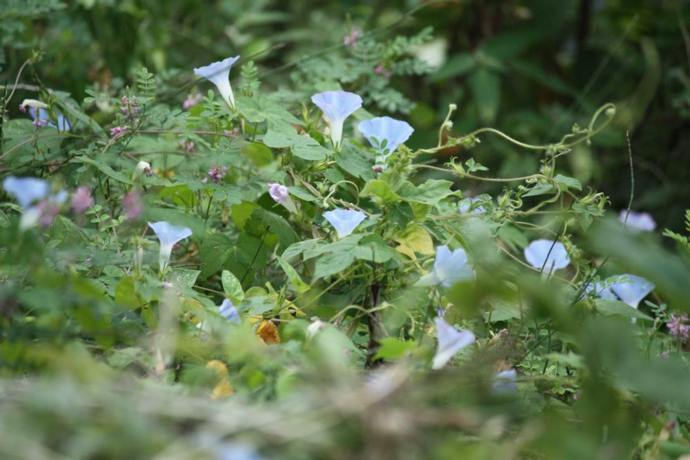 ツルボ群生場所の並びに咲くアメリカアサガオ🩵