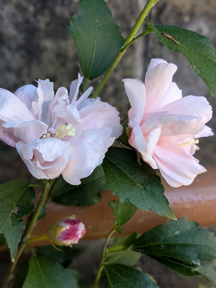 挿し木からの八重ムクゲ淡い🩷が咲いている‼️