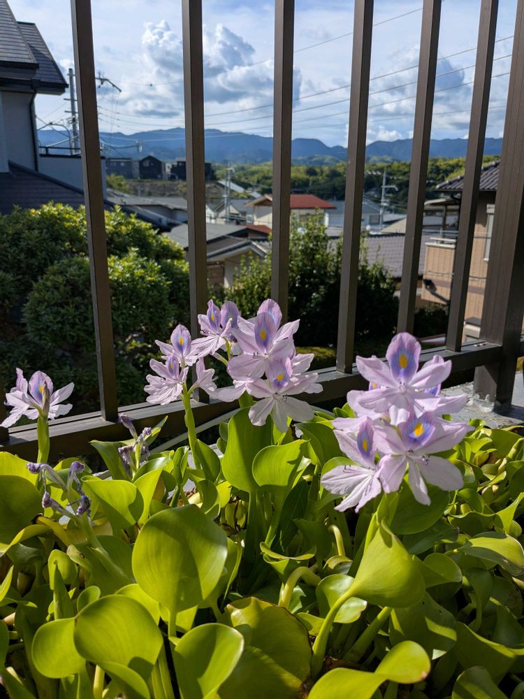 二階テラスでは水草ホテイアオイが次々と素敵に咲いているわ〜👏😃🎶