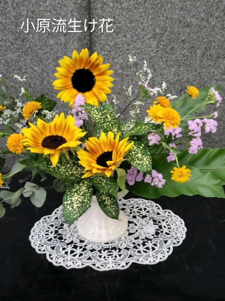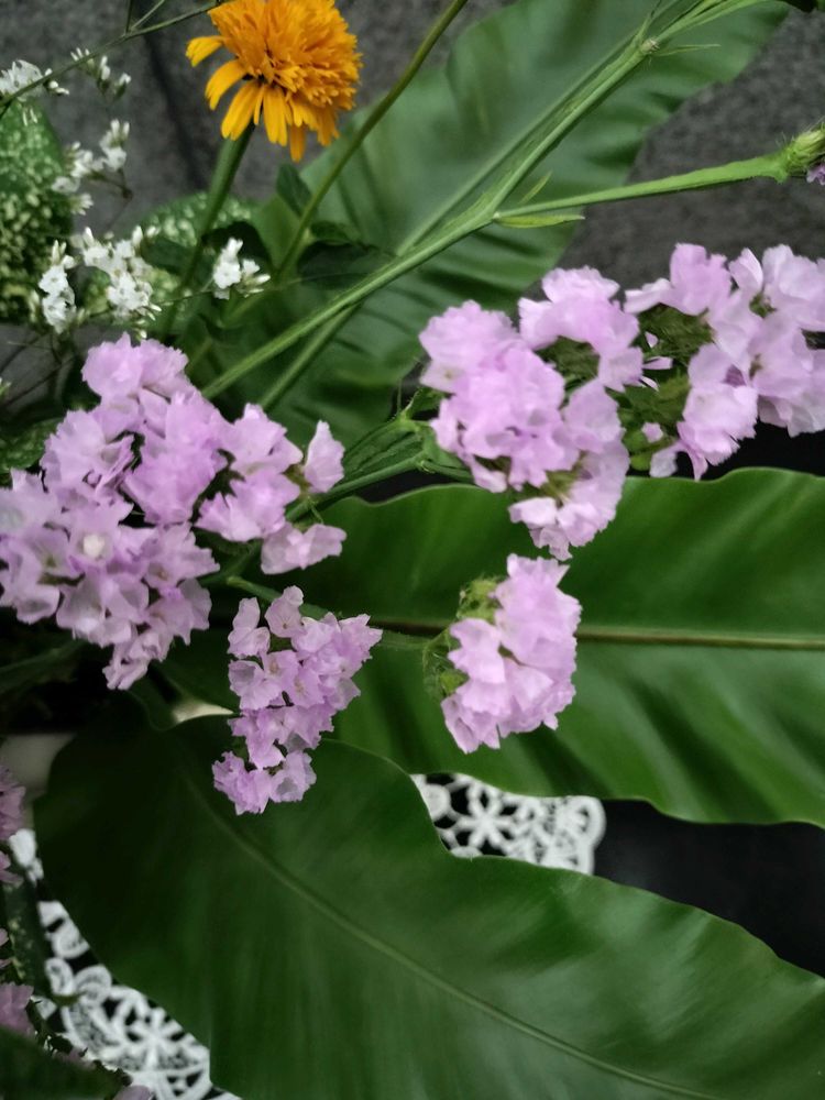 スターチス,ヒマワリ,斑入りアオキの投稿画像