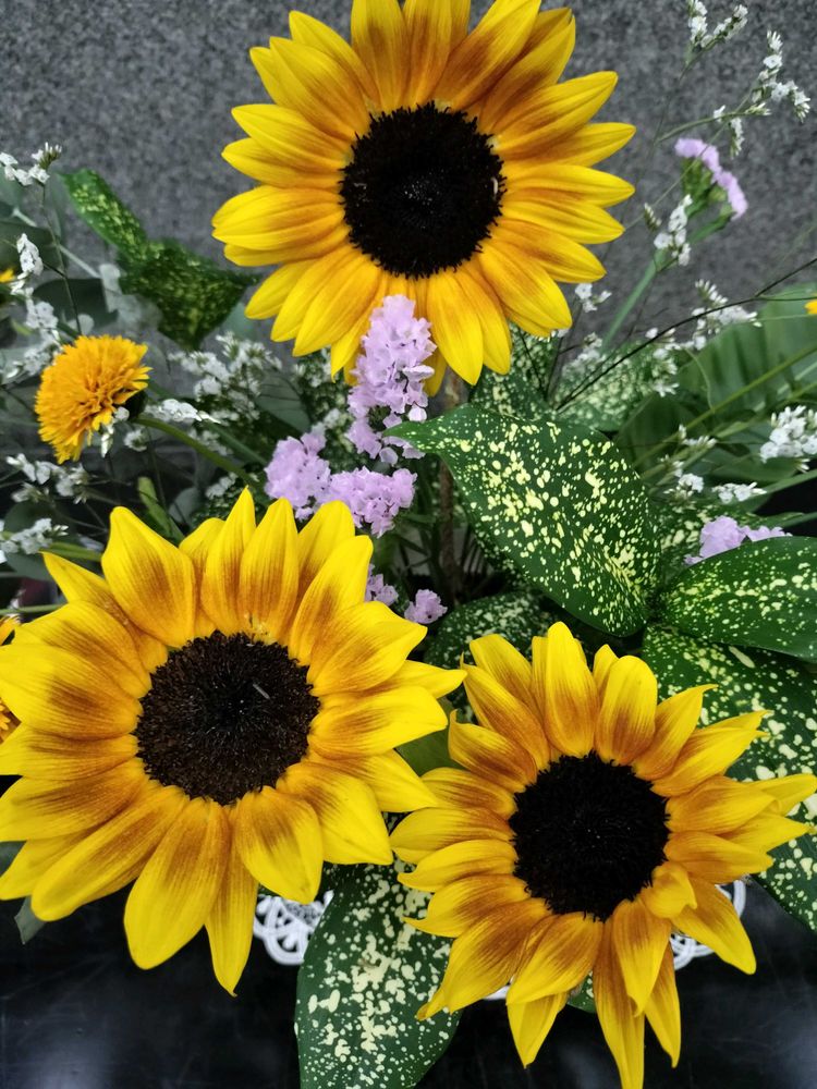 トリトン♪さんのスターチス,ヒマワリ,斑入りアオキの投稿画像