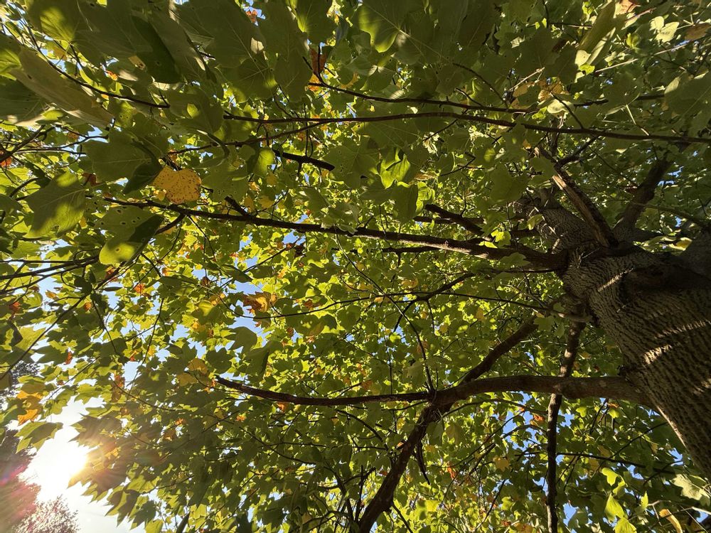 街路樹の中でも早く黄葉が始まる種かなぁ?落葉も始まる🍂