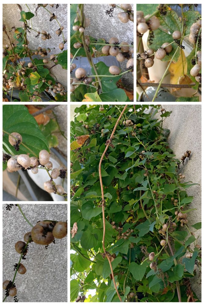 もう、かなり長くて、35年以上前から、突然、自生し、掘り起こし辛い場所に生えたので、ポロポロぶら下がるムカゴや.濃いグリーンの葉っぱから元気を貰ってます🤗