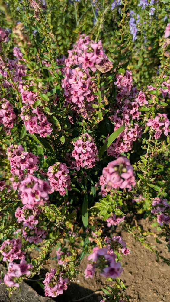 散歩道🚶、花壇でアンゲロニアが咲いています🌸🌸
