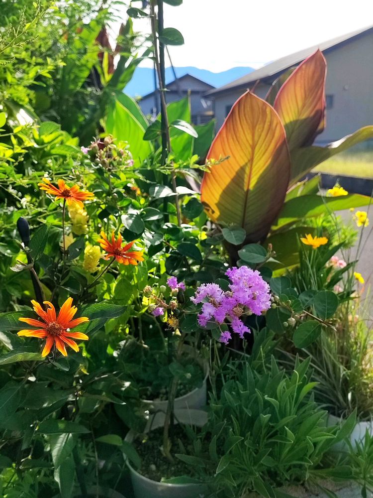 本日の庭その①。朝の水やりして、だいぶ秋めいて涼しかったので苗の植え付けやら、抜き苗を買って育ててたケイトウで寄せ植え作りやら、作業をばしてました。