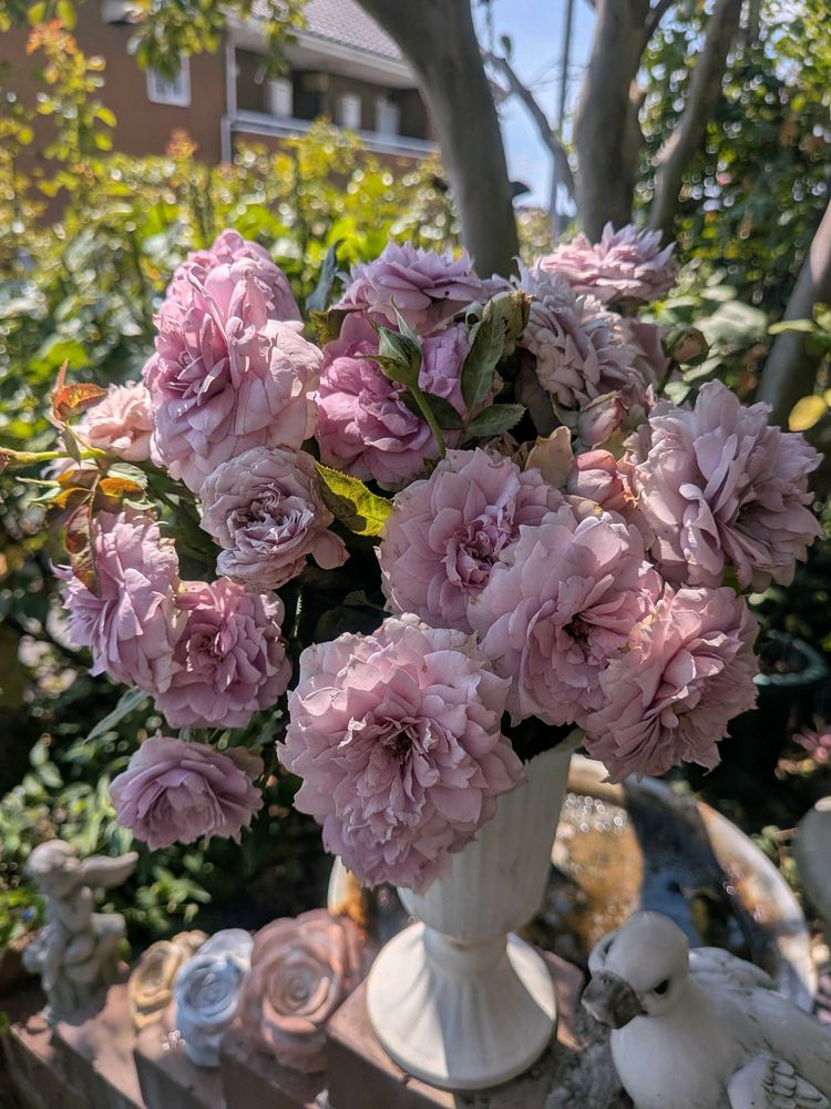 ①まだ早いかなと思ったけれど、深く切るし遅咲きだからノヴァーリス🌹今日剪定しちゃいました✂️まだ見られる花は飾ります🎶