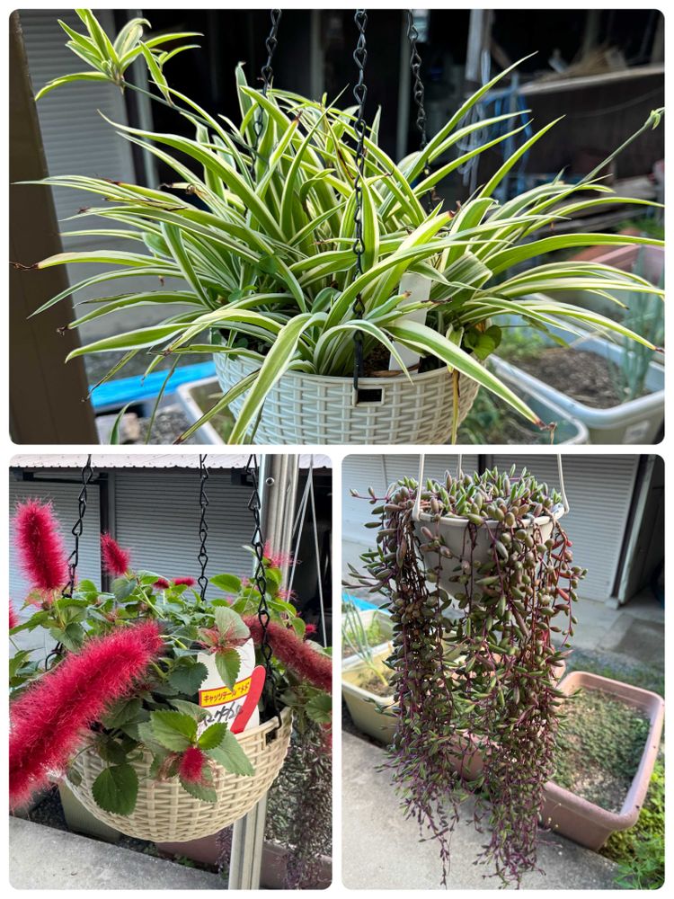 4枚目・我が家の洗濯干しに吊るしてる吊り鉢たちです。
