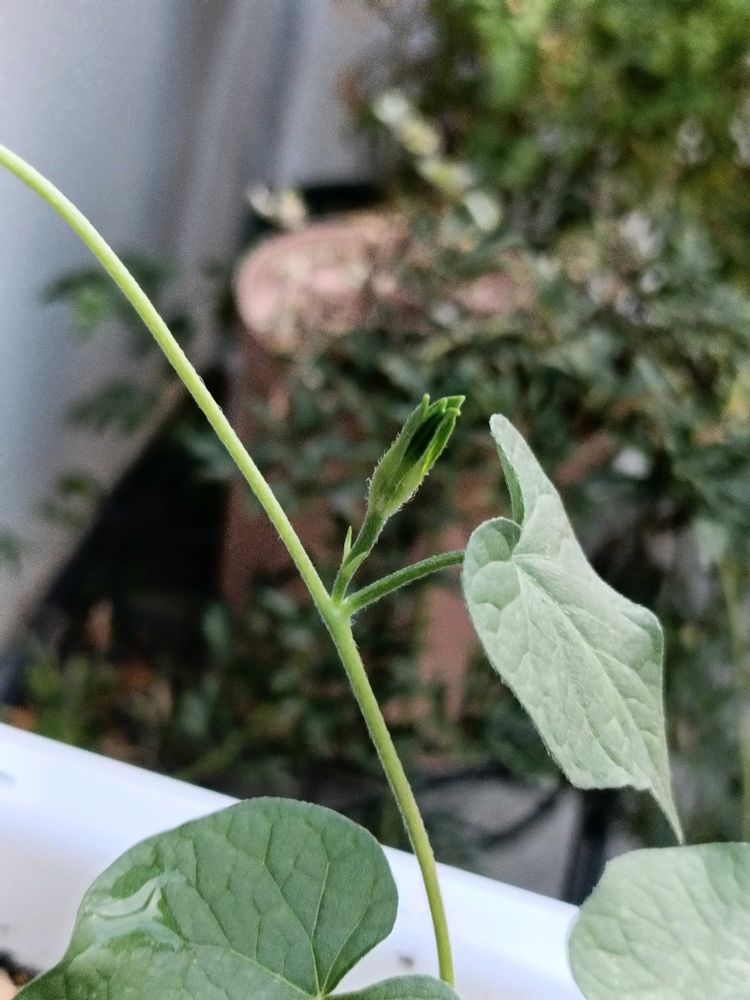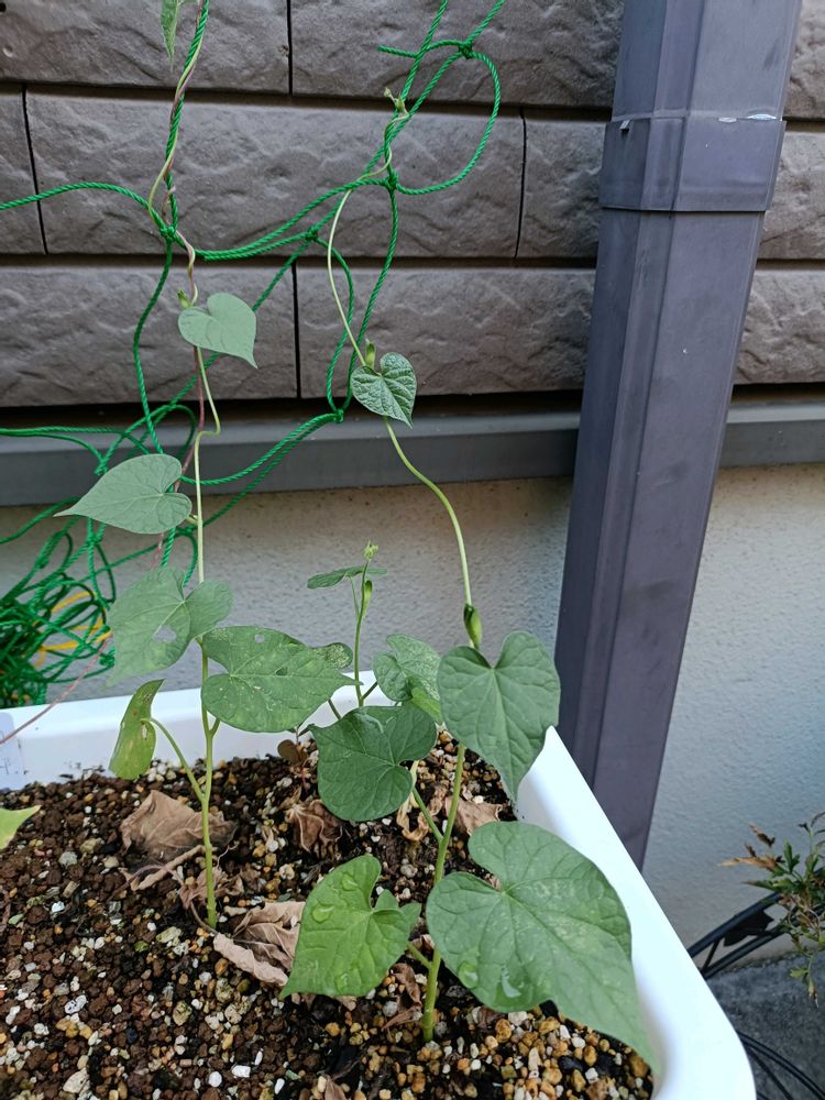 最近、暑すぎて夏に咲く朝顔には種ができないということが多発しているようなので、種を取りたくて遅くに蒔いてみました。