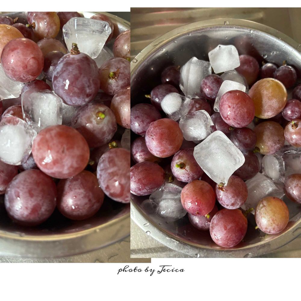 ぶどう🍇用のハサミ✂️で良く熟れていそうなのをカットして氷水で冷やして頂きました