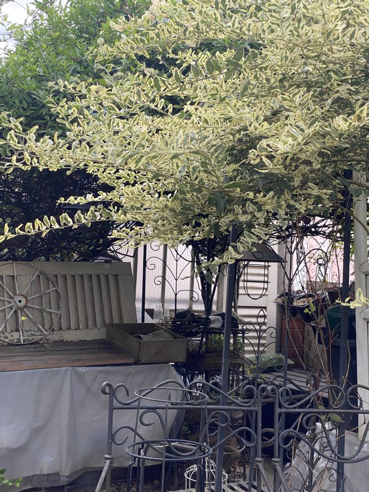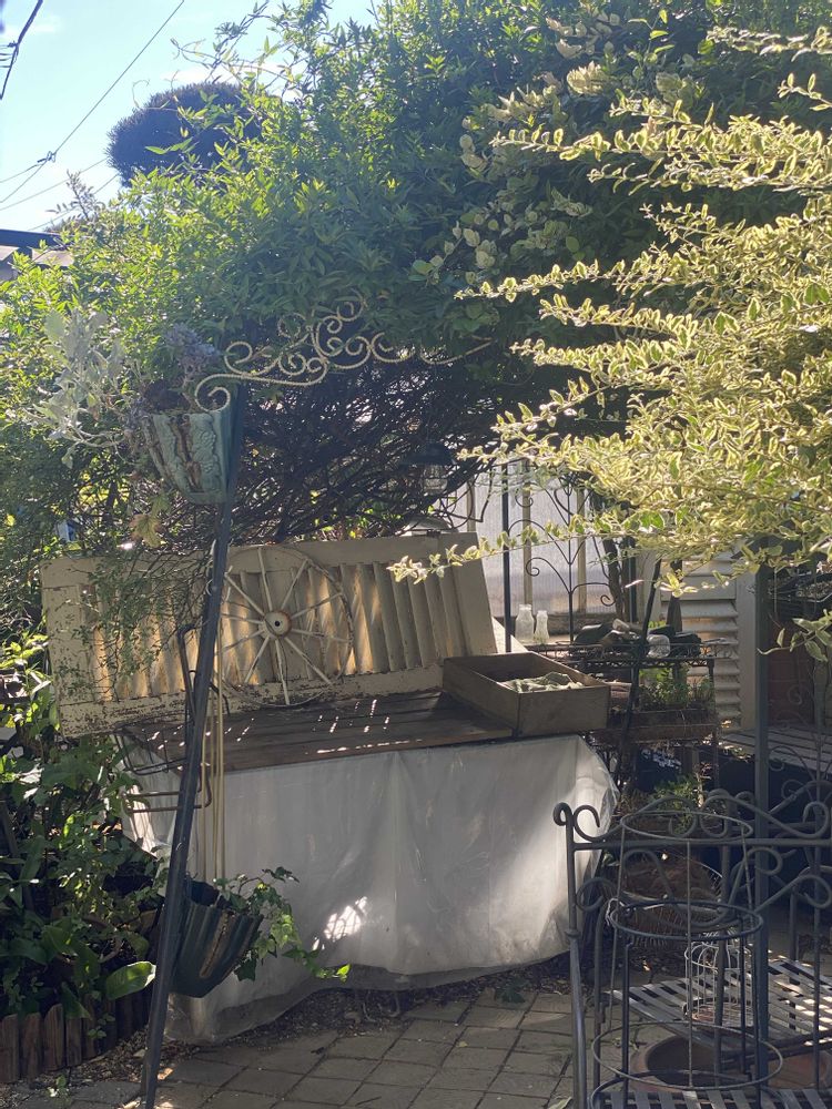 何だか雑多なバックヤードのガゼボの中が丸見えに...