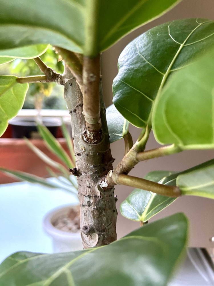 フィカスアフリカンプリンス🤴😊ようやく天面以外は新芽が出て来ました😊天面の新芽を出させるにはどうしたらいいか思案中です🤔