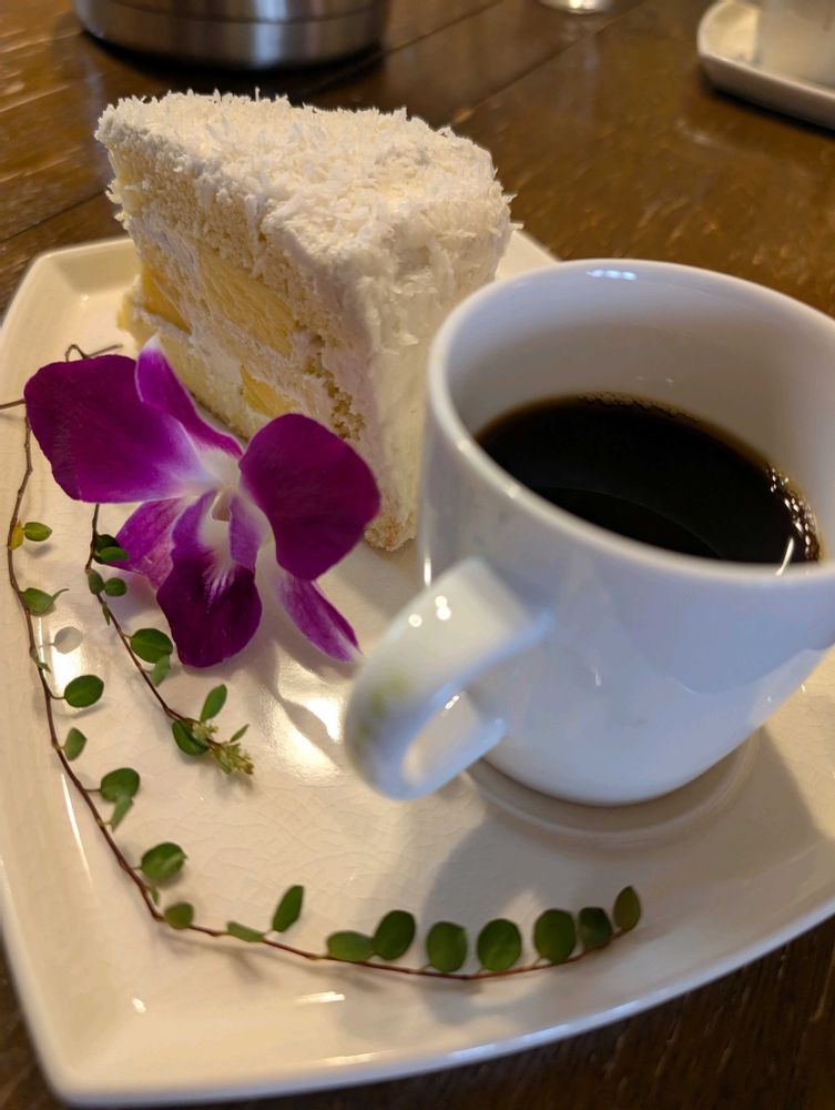 お友達が🧑🍳ヘルシーランチ𓌉◯𓇋 とパイナップル🍍ケーキ🥮を作ってくれて、お花とワイヤープランツを飾りましたψ(´ڡ`♡) "オイシ﹏ ♬*ワイヤープランツにお花が咲いていました~♬♬