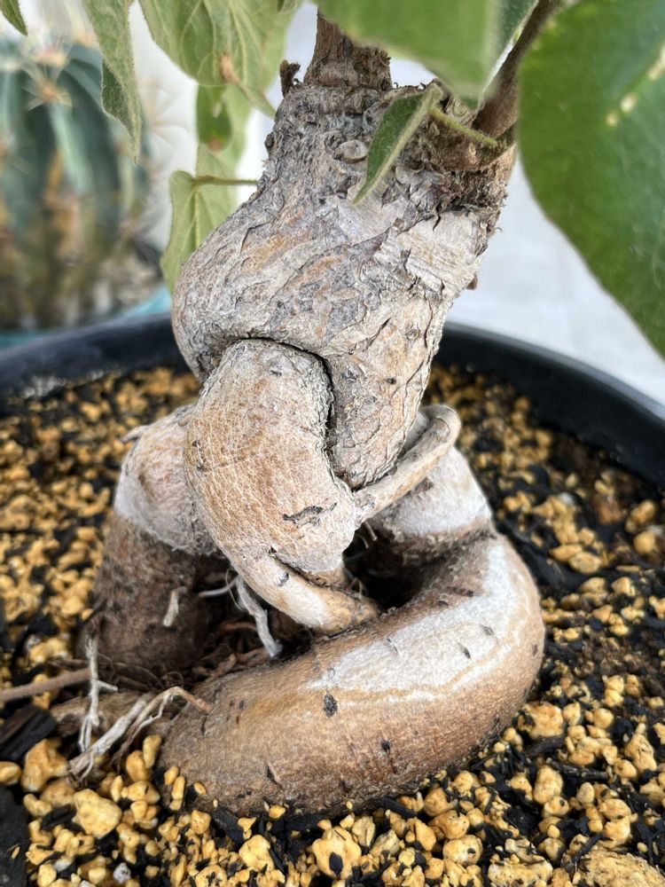 だいぶん前に、お店の方に塊根植物と聞いて購入。冬に強剪定を繰り返して塊根を太らせようとしていますが、あまり大きくなりません😂。毎年元気に葉を広げてくれるので、塊根植物と言うよりは観葉植物🪴ですね👍。