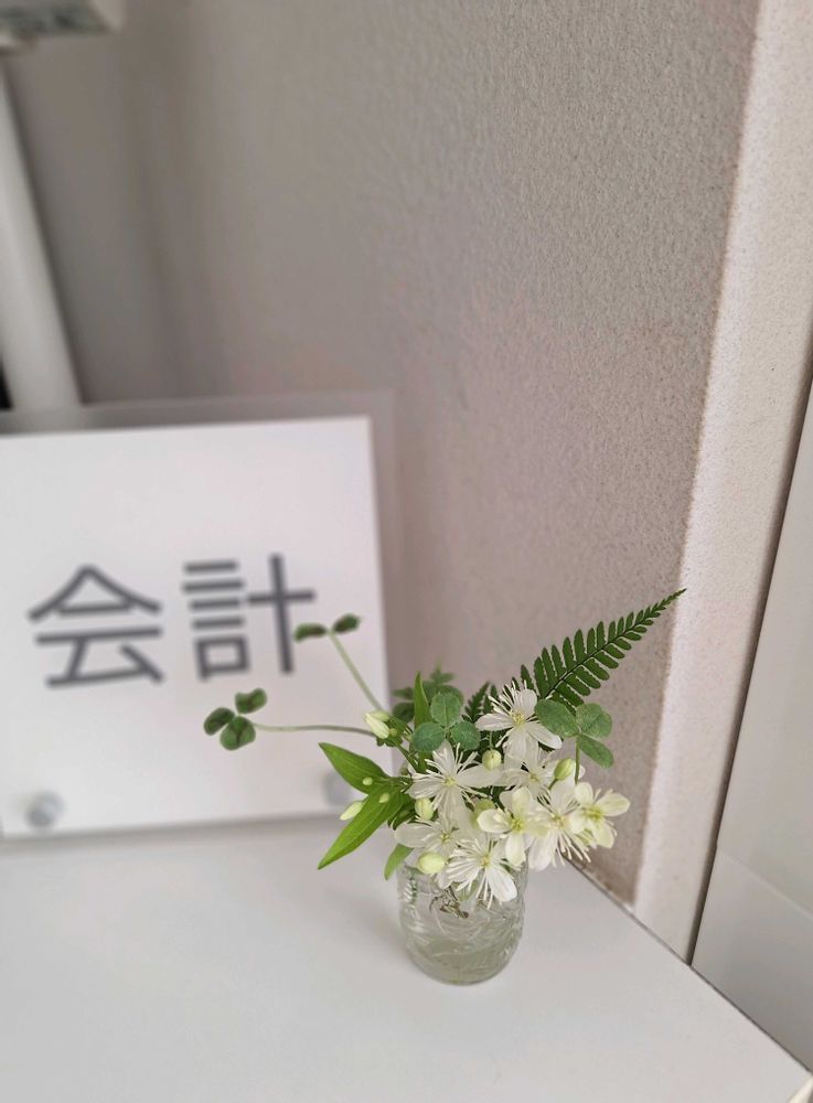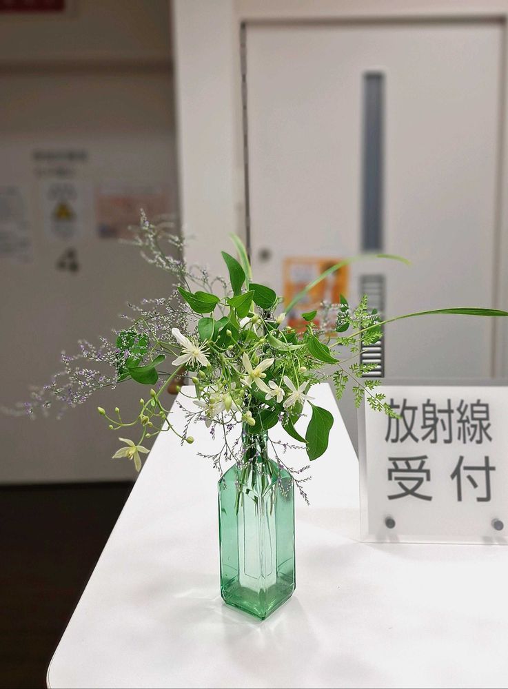 ガラスの花器が涼しげでとてもステキなアレンジですねー🌿🎐🌬️