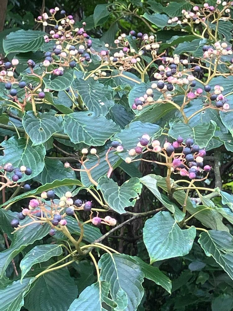 最初は緑色ですが、徐々に赤紫色から黒紫色に熟しますが,最終的には黒⚫️くなるそうです😊