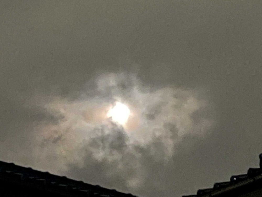 線状降水帯のお知らせが次々入るなかでのお月さま🌔