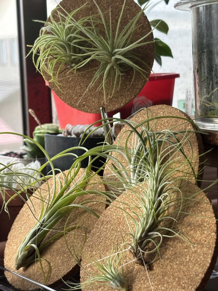 エアプランツを見よう見まねでコルクに着生させてみた。