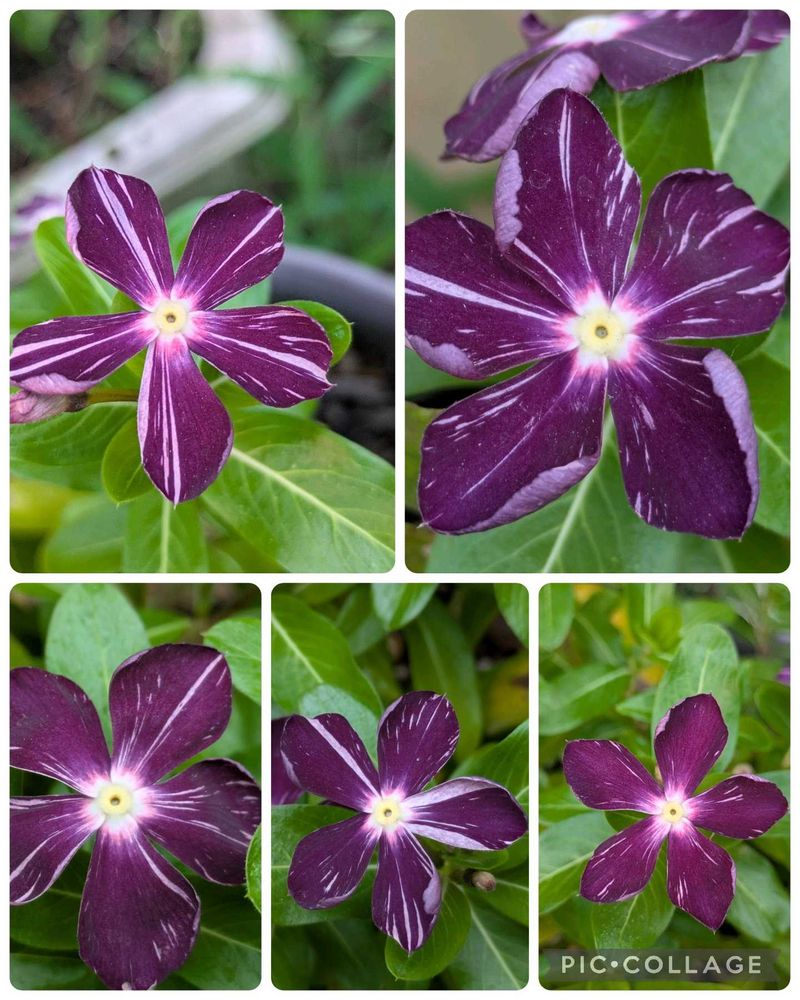 HCで、偶然絞りニチニチソウを3種見つけました。それぞれ、微妙にタイプが違って、面白いです💜💜🤍💜💜🤍💜💜