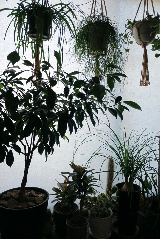 スッキリした壁面にお気に入りの植物を一つ…みたいにスタイリッシュに飾るのが素敵だろうな~と思いつつ、コレクションしたくなる癖も捨てられず、結果こんなことになるんですよね😅