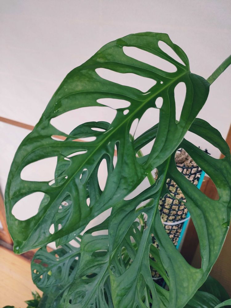 マドカズラの葉が細長く、穴も広くなり、ワイルド感が出てきました!😆(2枚めは通常の葉です)