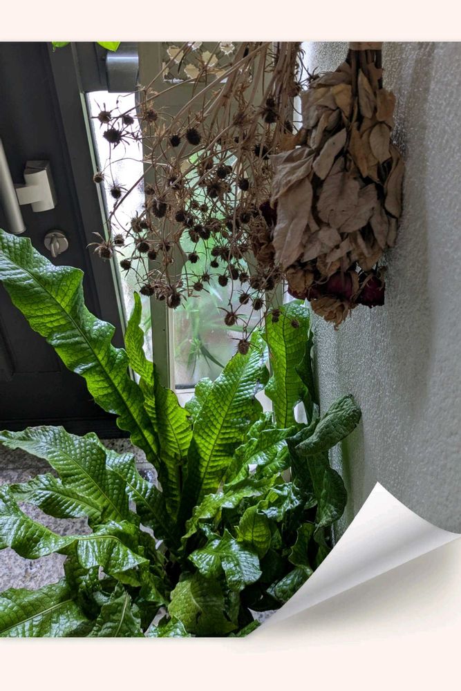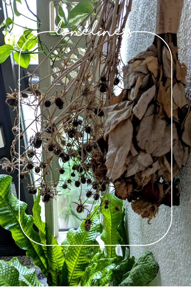 玄関中はドライフラワーと観葉植物で楽しんでいます エリンジウムもバラのドライも吊るしておいただけのもの♡♡♡♡♡