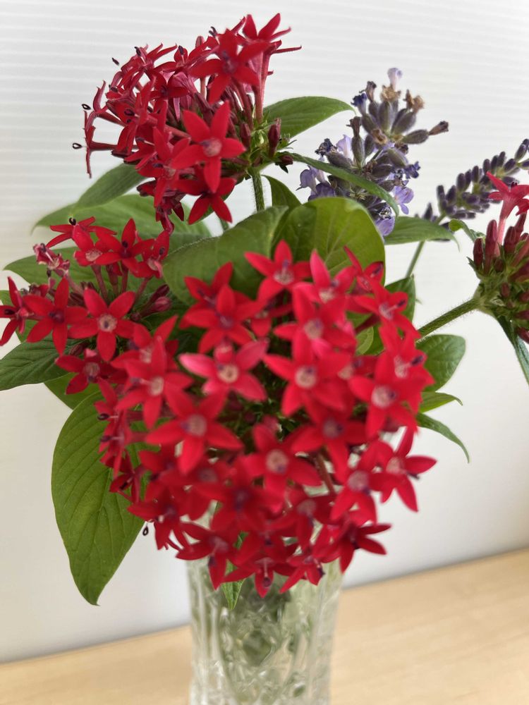 プランターのペンタスを切り花として飾りました。やはり赤いお花は屋内外共にパッと華やかになりますね。
