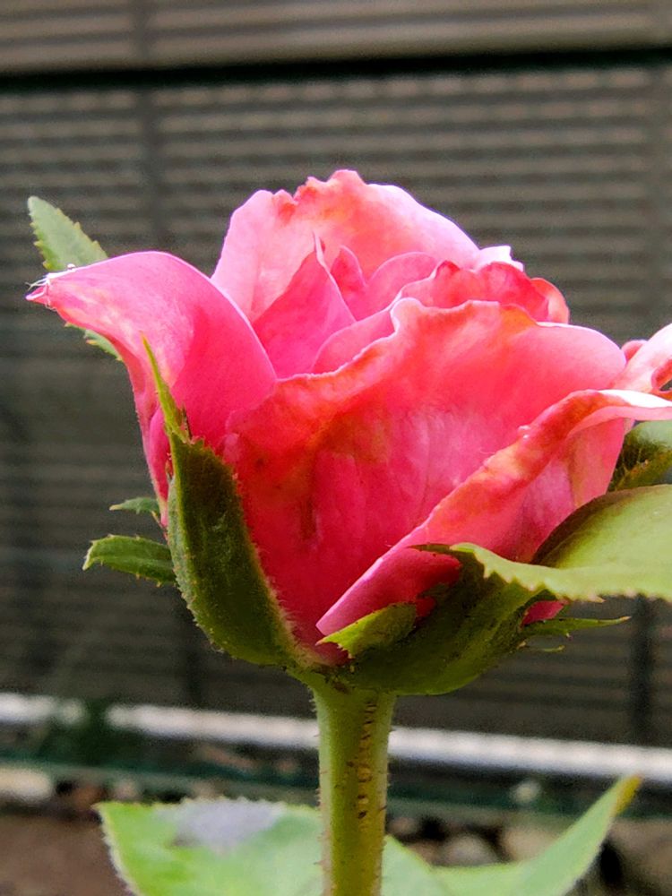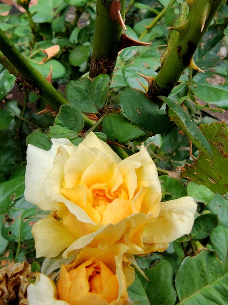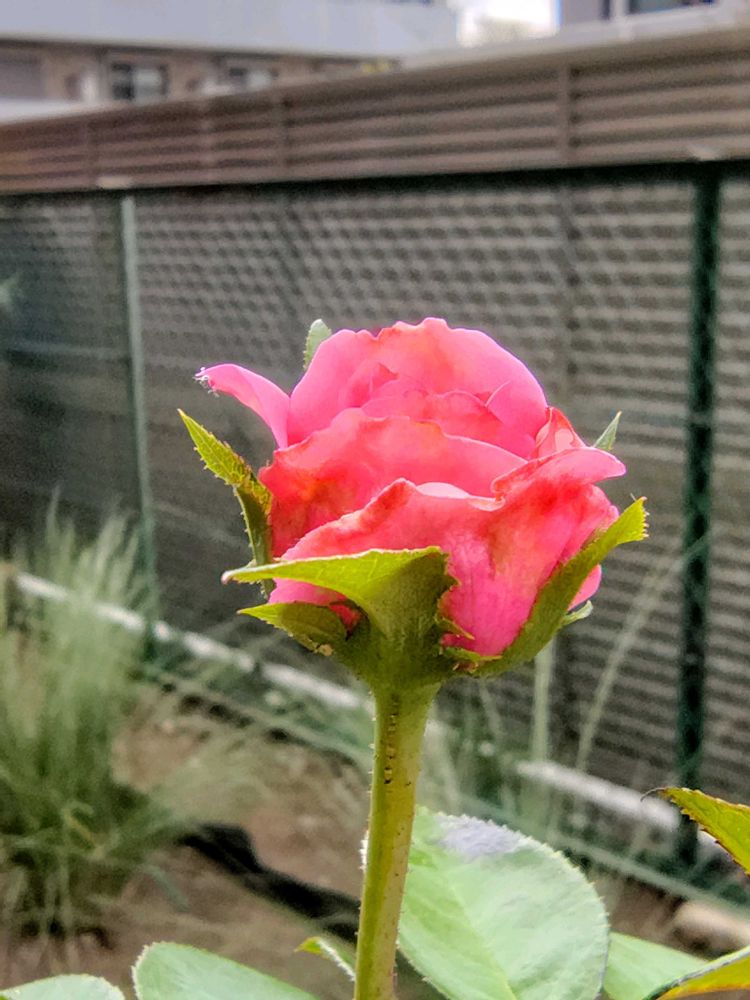 部屋から庭を見たらディジリーがピンと背高く見えて慌てて撮りました。一番花咲きが少なく咲いてくれてうれしかった🌹