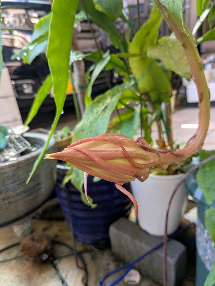 月下美人(夕方咲くなら月下美人。朝咲くなら孔雀サボテン)