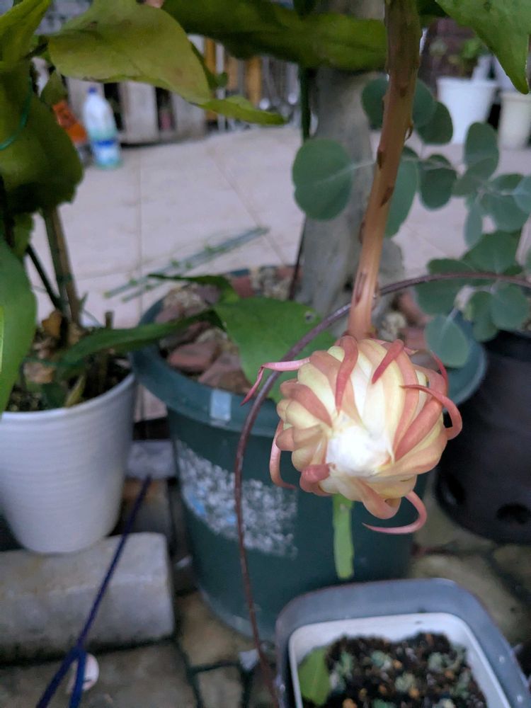 月下美人の花は、夕方6時過ぎくらいから、少し先っぽから、白い花ビラが見えだして、11時過ぎ頃には、綺麗に花が先始めました😍👍