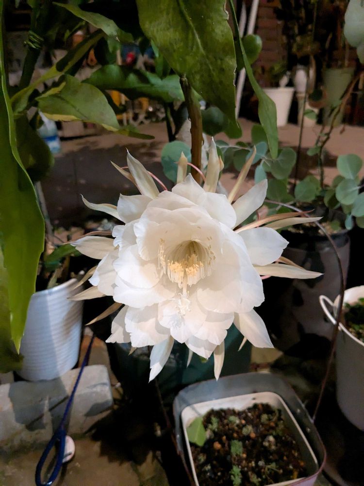 花が咲きそうに膨らんで白くなって来たので12時辺りから、3時まで、見張っていたのですが?どうも、次の日の8時〜9時辺りに、ドラマを見ていた時間に咲いてしまった様で、後の祭りでした。羨ましいです
