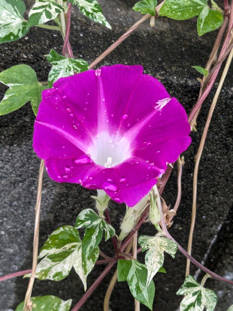 朝顔 斑入り赤紫